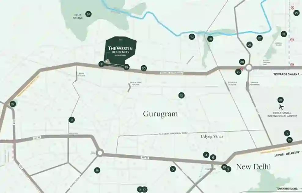 Westin Residences Sector 103 is an ultra-luxury residential development in Gurgaon strategically located on the prime Dwarka Expressway. This premium project developed by Whiteland Corporation in collaboration with Marriott International is set to become India’s largest branded residence. Spread across 21 acres, Westin Residences Resort Dwarka Expressway will feature five iconic towers offering spacious 3.5 BHK and 4.5 BHK apartments, designed with world-class specifications. The project is RERA-approved (Registration No. 65, 66 & 67 OF 2024). Designed by renowned architect Hafeez Contractor, Resort Sector 103 Gurugram boasts interiors by BM&A and lush landscaping by Coopers Hill. Whiteland Westin Residences focuses on luxury world-class amenities like a fully equipped gym, swimming pool, landscaped gardens, jacuzzi, lagoon, and a 5-tier security system.